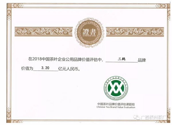 喜訊 |“三鶴”六堡茶品牌價值升至3.2億元
