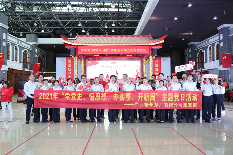 4月26日,梧州市茶產(chǎn)業(yè)發(fā)展服務(wù)中心組織全市茶人、茶企開展題為“感黨恩,跟黨走——梧州六堡茶人唱支山歌給黨聽(tīng)”的聯(lián)合黨日活動(dòng)。(廣西梧州茶廠有限公司黨員代表進(jìn)場(chǎng))